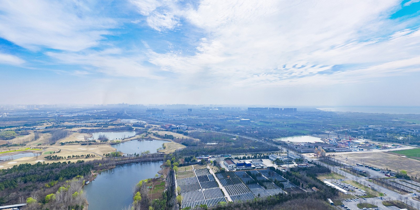 在此图中可以看到,远处有点雾蒙蒙的,是因为天气不好吧?当然不是,拍摄当天太阳很不错,但为何航拍就有雾呢,因为拍摄时间为3月,天气还没很暖和,所以经常会有雾,那为何拍视频的时候不会有这样的问题呢?原因是拍视频的时候主要在航拍的时候对着地面的不需要看到空中过远的地方,当然如果航拍视频对着远方,但在湖州航拍VR全景的时候,空中720度反胃内的所有位置都能看到。